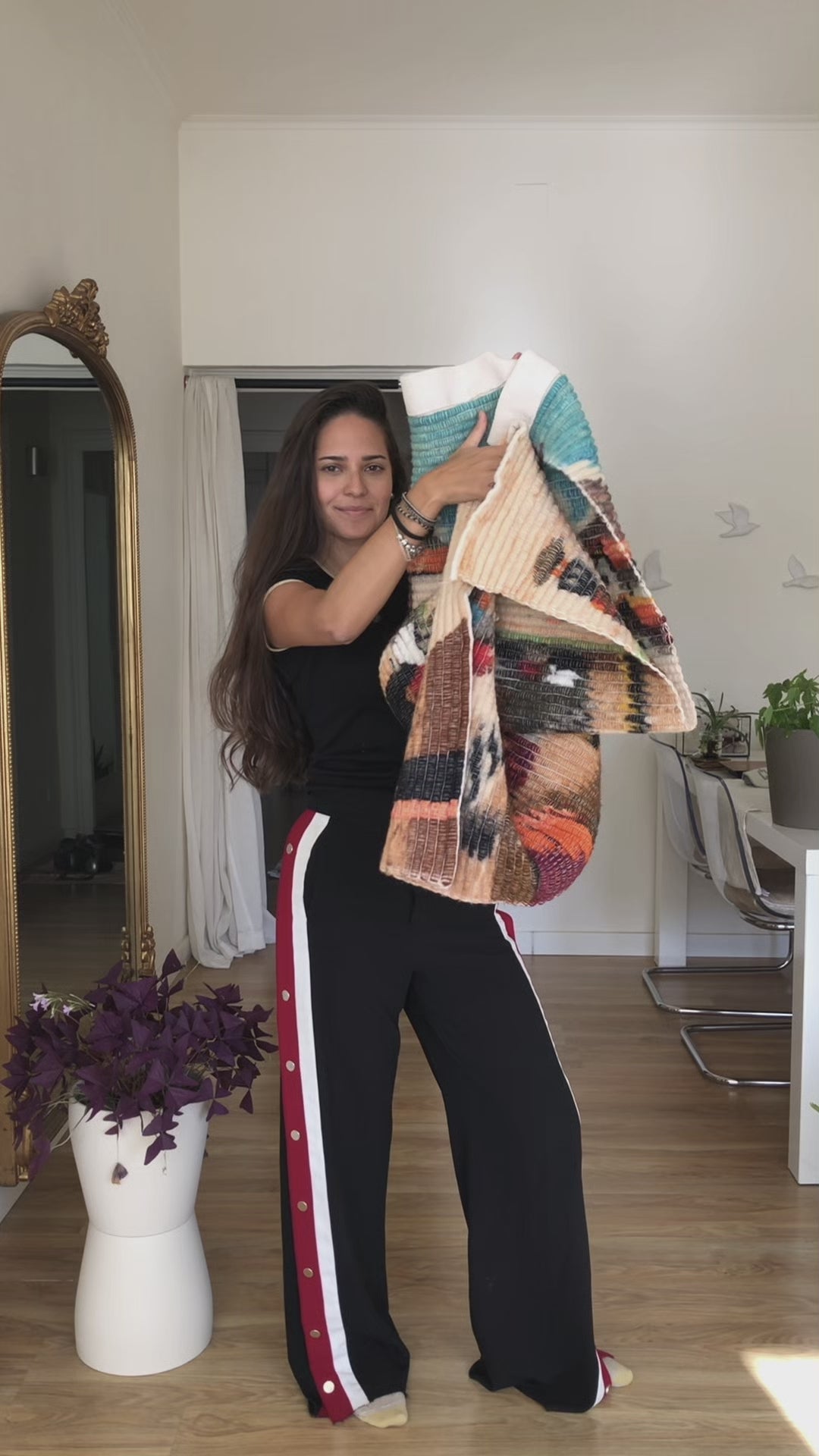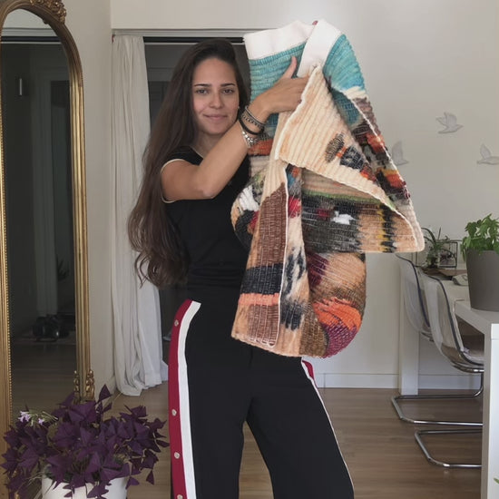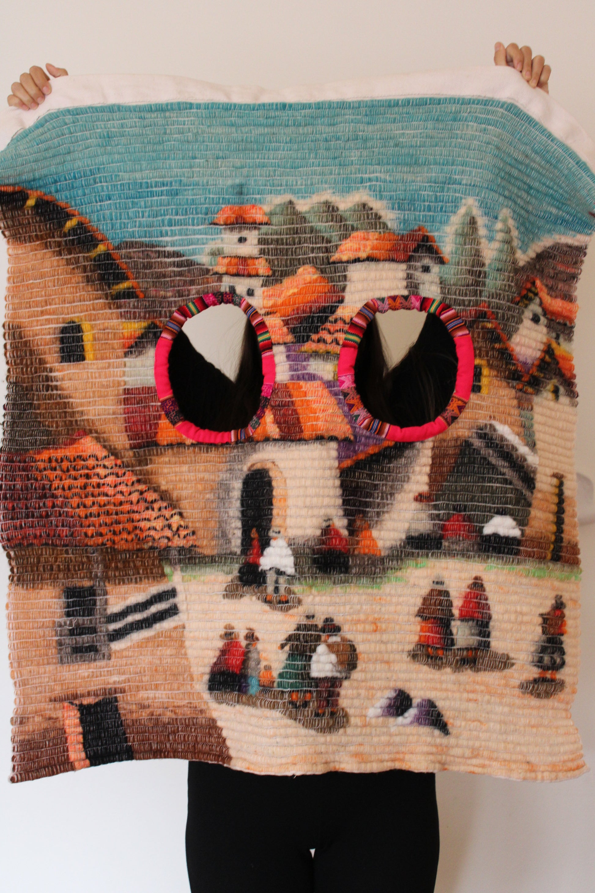 Introducing this handmade Poncho by Marie-Christine's Design, a transformation from a wall Carpet bought from Peru. This is a limited Edition Piece and it is 100% Wool.