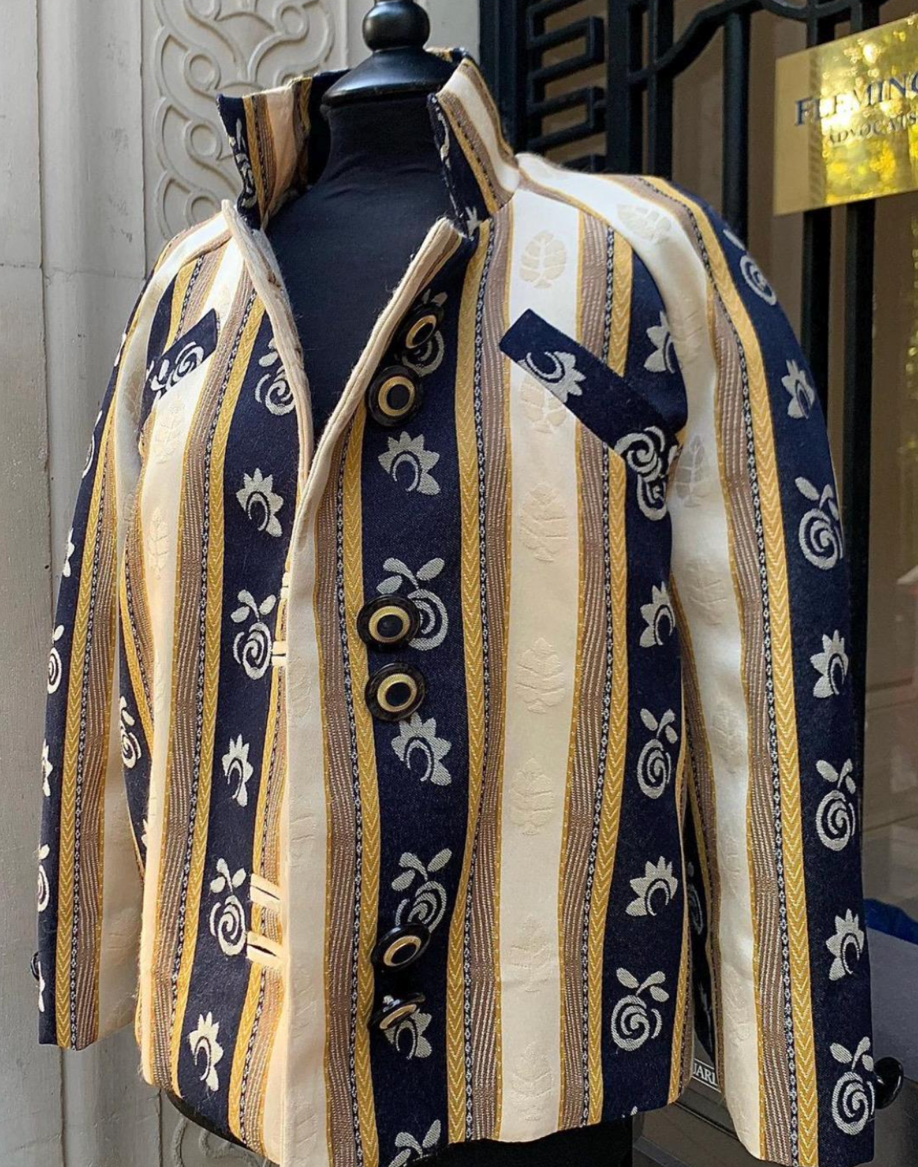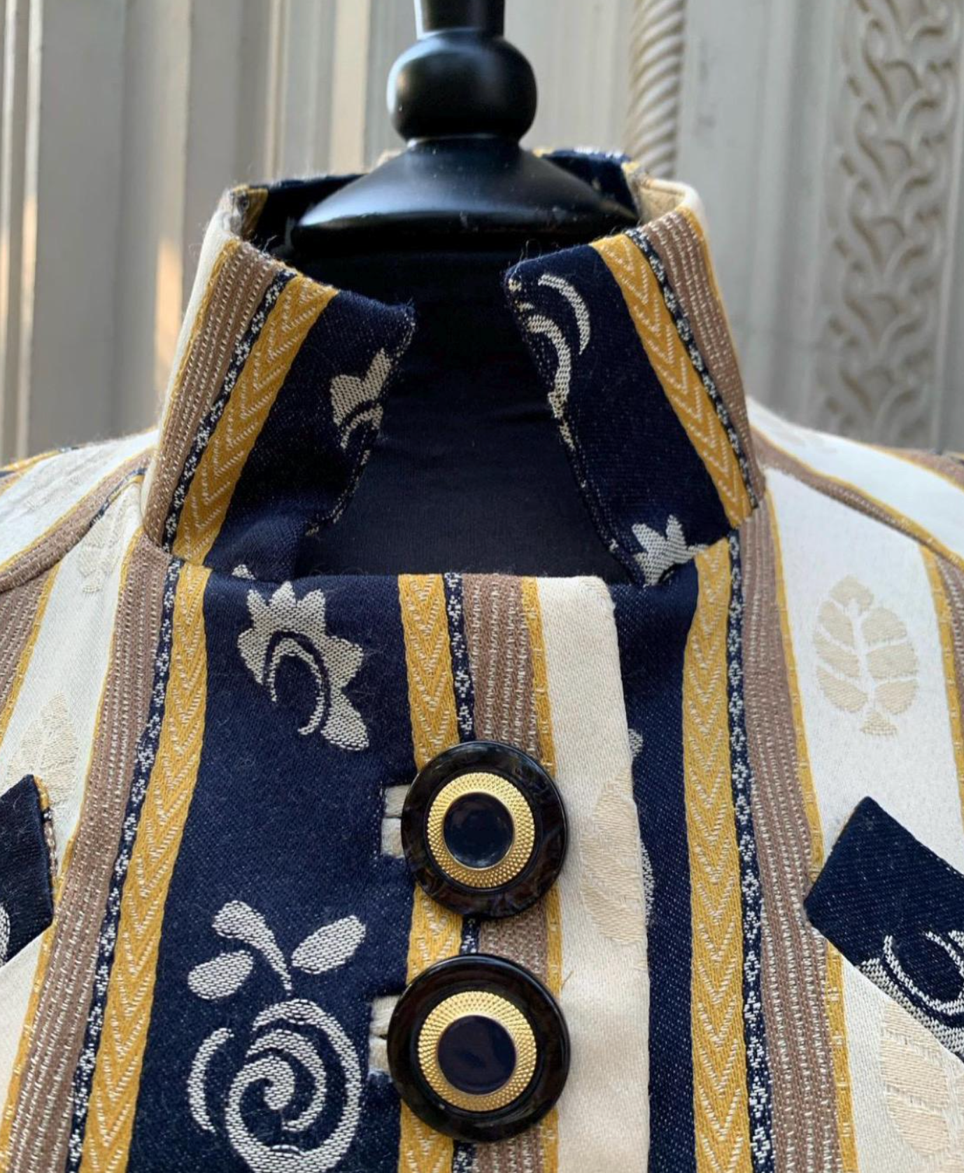 Introducing our Wonderland - Märchenland Handmade Raglan Jacket. Made from a vintage table cloth from the late 1960s in Hamburg, Germany, this double-lined jacket features wide sleeves, two handcrafted Welt Pockets, eight Haute Couture buttonholes, and a unique one-size fit. Enjoy the timeless elegance and authenticity of this one-of-a-kind piece, expertly crafted with delicate attention to detail. Composition is unknown, but mixed with polyester for added durability.
